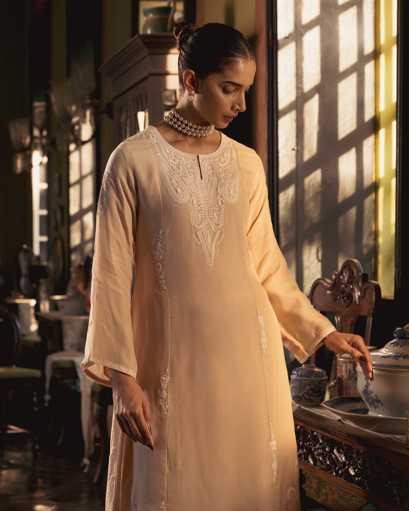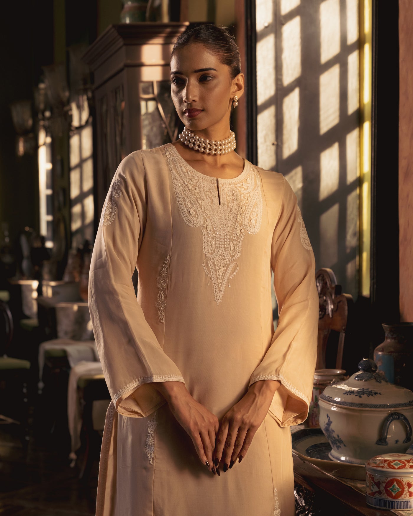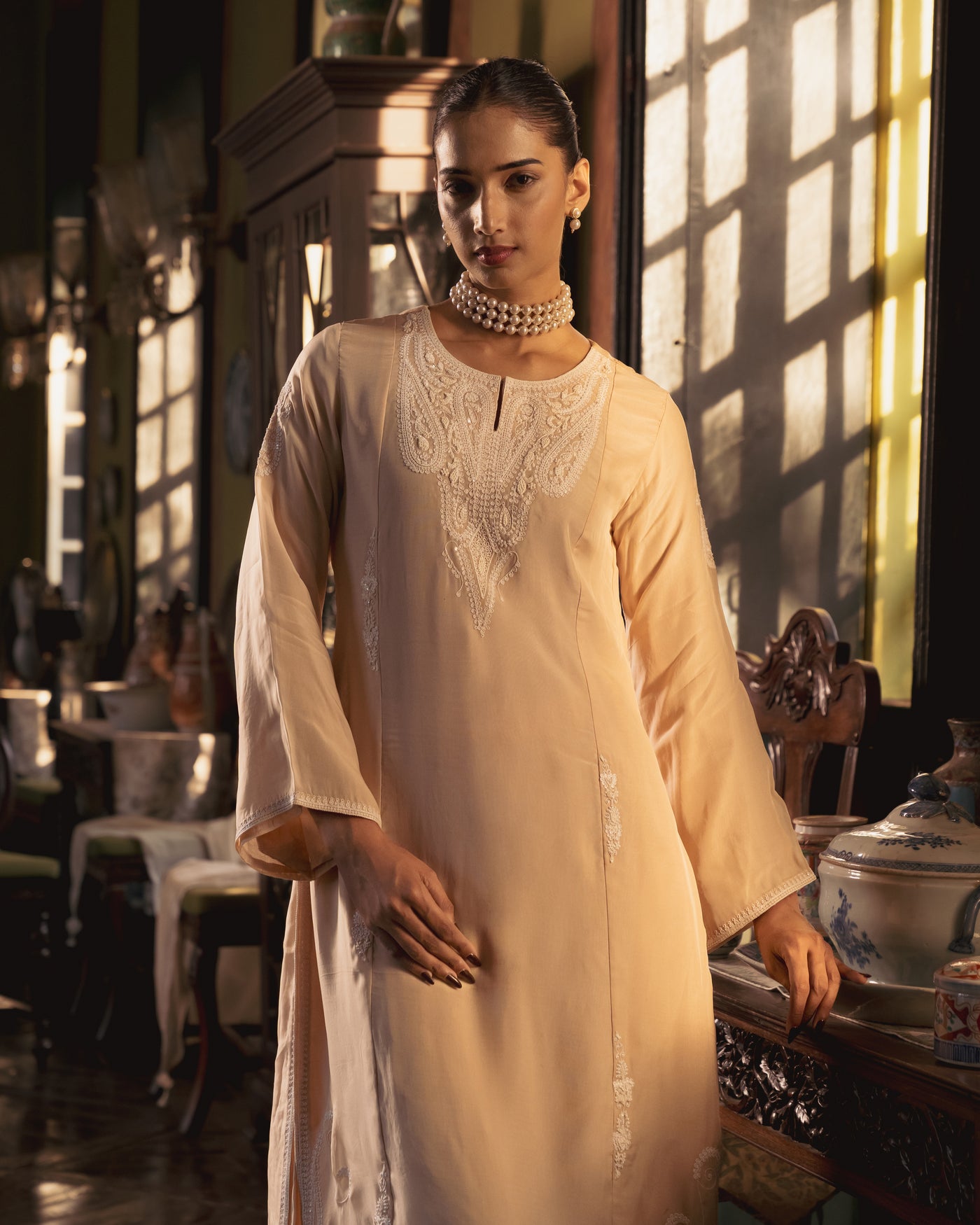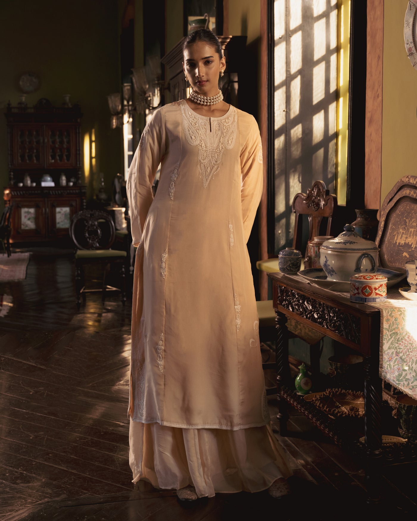Cream Organza Kali Suit Set - XS