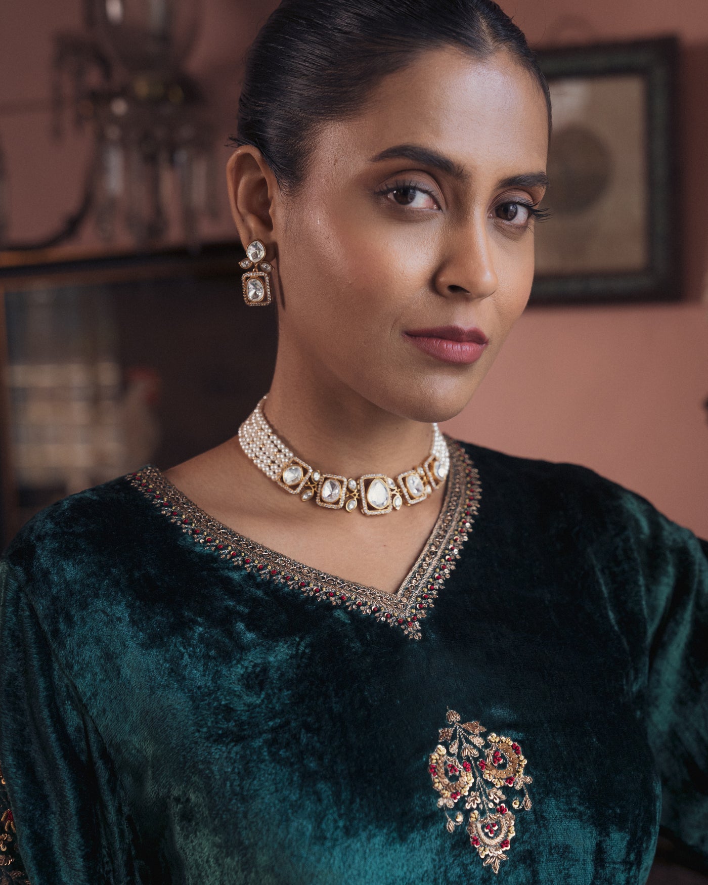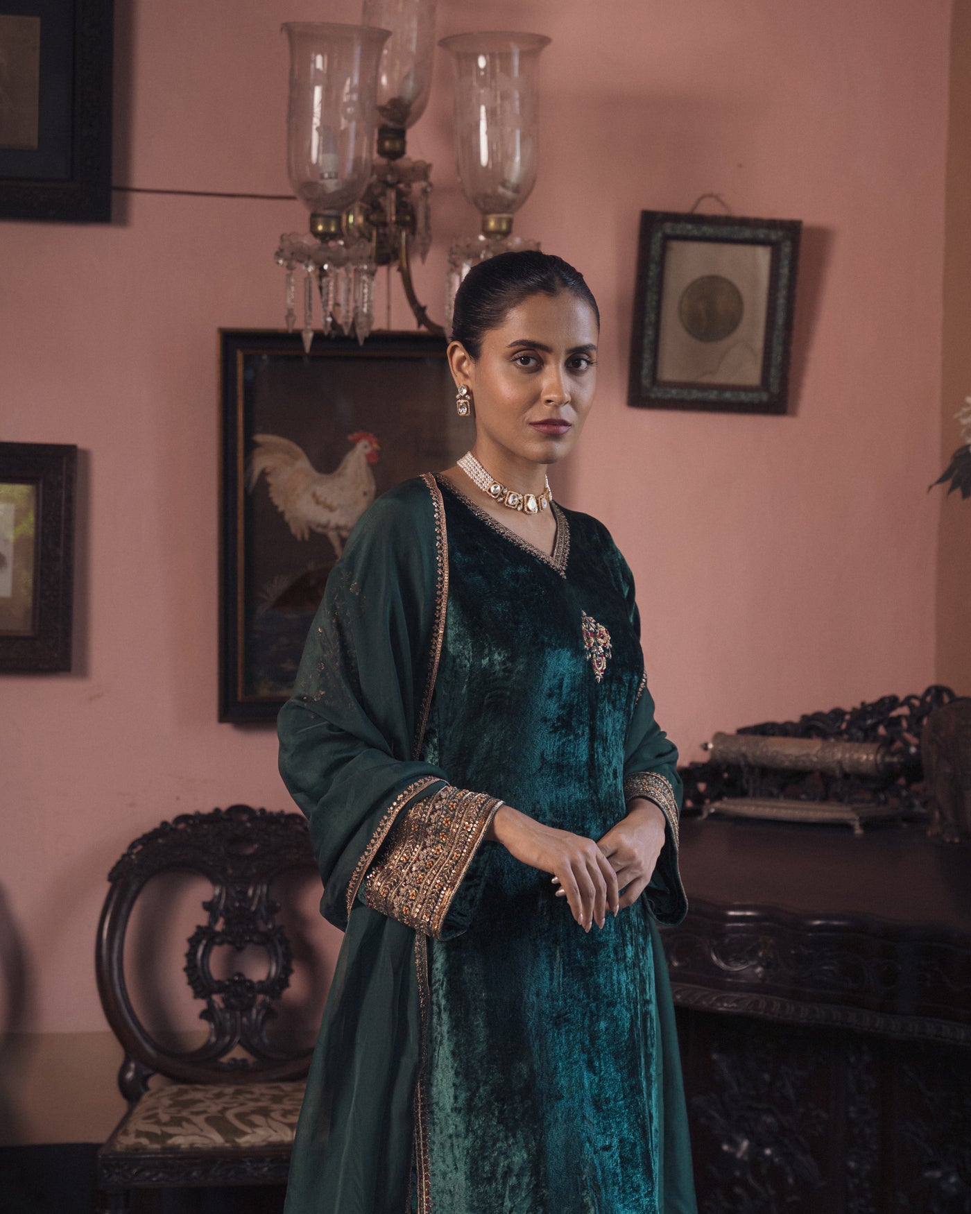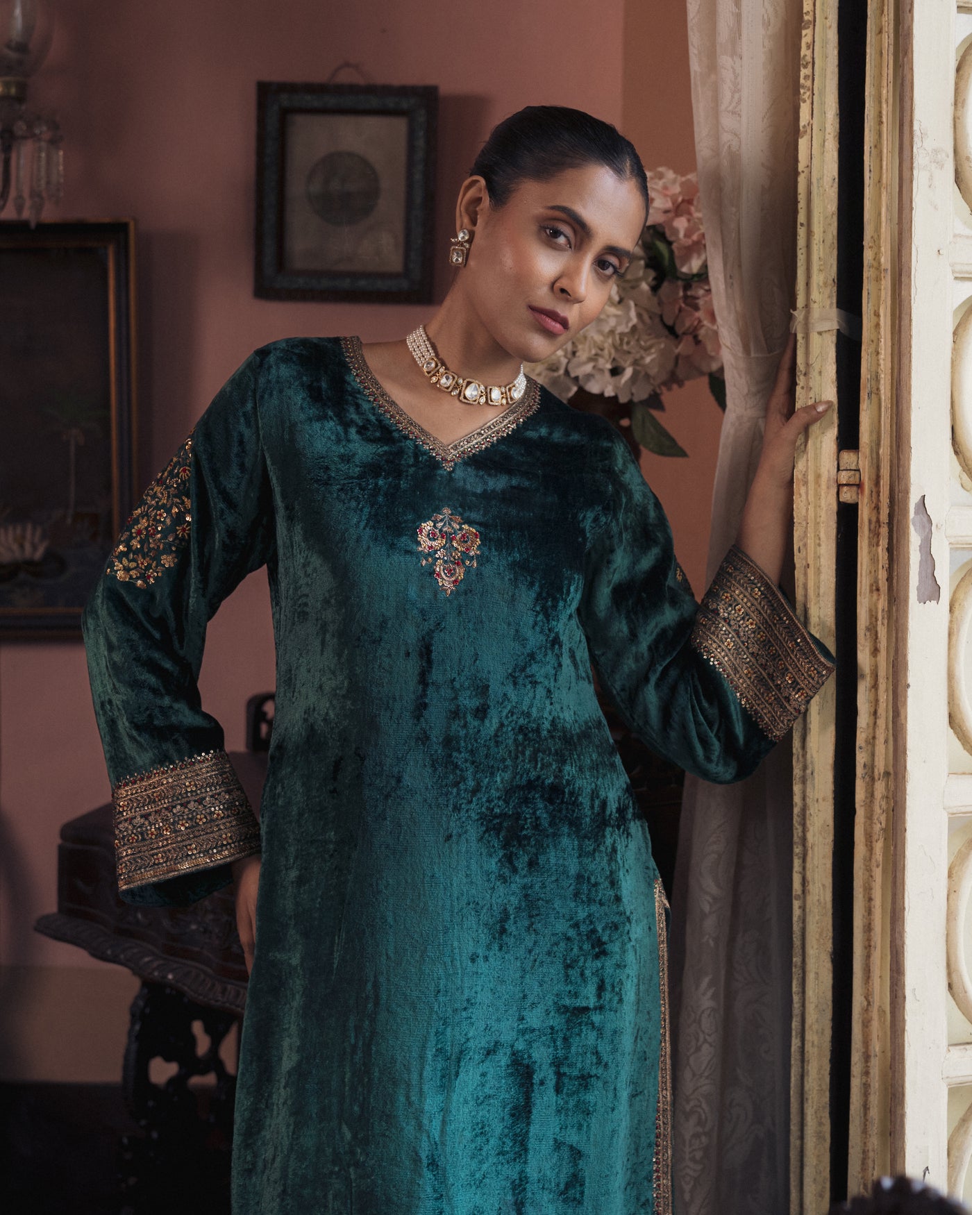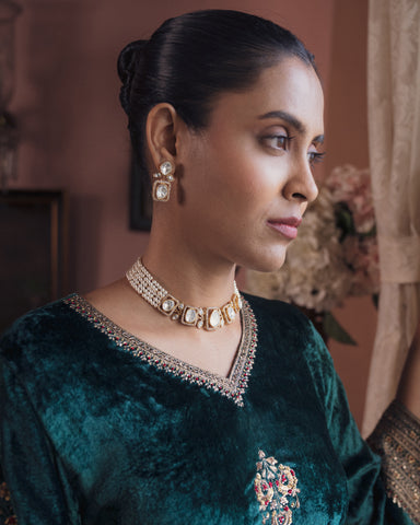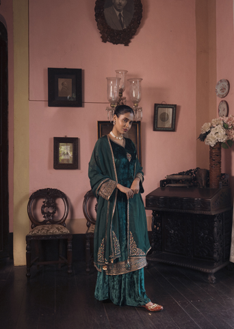 Dark green velvet suit set Sale